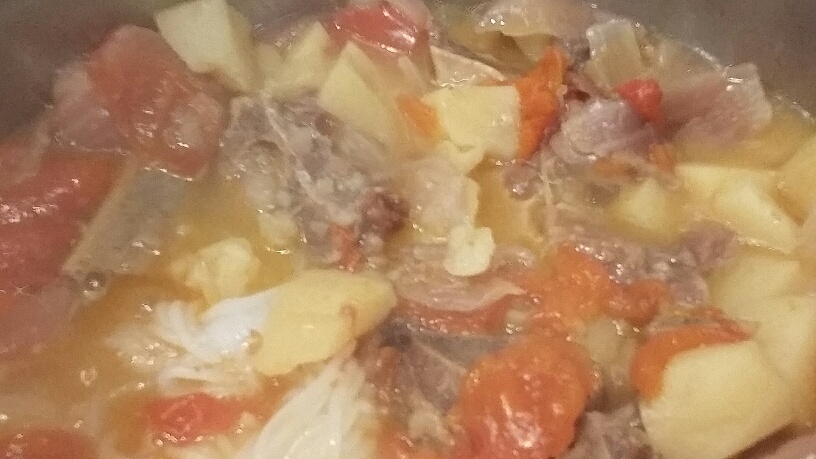 4. Cook under pressure for 40-50min then remove pressure  and add in the rest of the tomatoes and vermicelli. Continue cooking for another 10-15min.