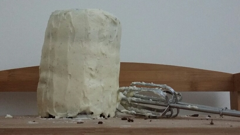 The cake isn’t anything really special, just a regular chocolate bizcocho (Spanish sponge cake) with vanilla buttercream.The presentation isn’t the best but it got high rating from my family- good enough for my first layer cake… right?.