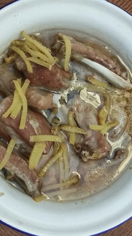 - Place the ribs in a bowl and add the cooking wine, ginger and salt. Allow to marinate for 15-30min