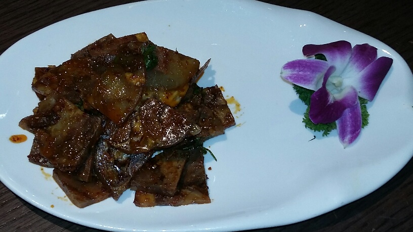 This dish is basically boiled beef tendon that has been chilled and doused with spiced chili oil. Despite the rather unappetizing description, the dish itself was quite delicious. The tendon was actually chewable, but not too soft, but the chili oil made it a bit too greasy and wasn’t distributed evenly