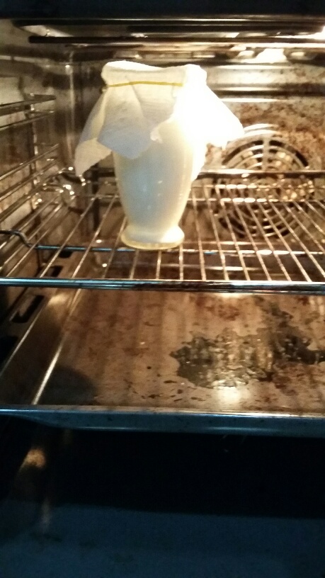 So on Sunday morning, I mixed every thing into the jar, covered it and 12hrs later….. nothing. As it turns out, the bacteria need a nice warm place to ferment. Well, that was easy, I turned the oven to 45 degrees C and left it overnight (8hrs)