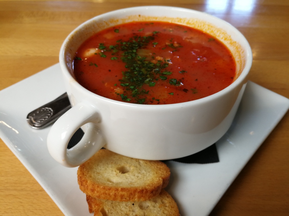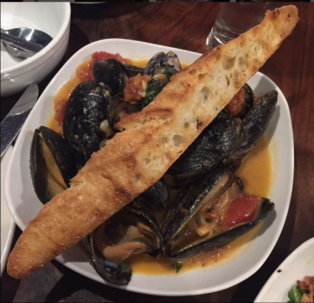 I’ll start with the soup. My mom didn’t think it would be enough to fill her up for lunch, but she could not have been more wrong. It was loaded with clams, muscles, shrimp……and just to satisfy those who just need carbs, the soup came with some garlic bread.