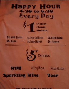 Turns out, the happy hour oysters actually existed! Even better, cocktail shrimp and clams were also included in the deal!. So, we did the logical thing and ordered a dozen of each.