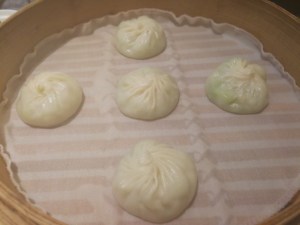 Ding Tai Feng is a tried and true Taiwanese restaurant with the usual steamed buns, soups and beef noodles. However, it’s really adapted to Shanghai tastes. The menu features not traditional steamed dumplings, but variations of Xiaolong soup dumplings! I must say though, the options were pretty limited compared to the LA joint and creativity with Xiaolongs came at the expense of more traditional dishes such as har gao. Here’s what we got: