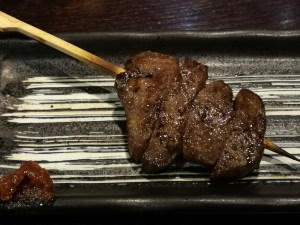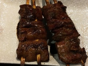 Salmon Cheek (salmon head on the menu)- This dish isn’t technically yakitori, but I can’t resist salmon head. It didn’t even realize it made top ten. When the dish arrived, I realized “salmon head” was a mistranslation. What we got was three thick, meaty pieces of salmon cheek. I could not have been more impressed. Besides being incredibly fresh, the fish had a perfect fat ratio. The cook turned out to be better than the meat. Not only was the skin perfectly crispy, the meat was JUICY, like a steak! The spices and smokiness also magnified the beautiful natural richness of the salmon. Even my dad, who hates fish, raved about this dish. ORDER THIS!!!!