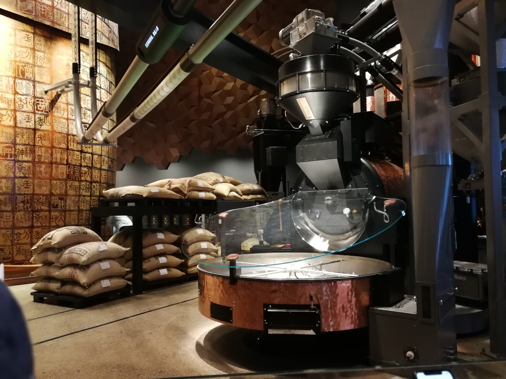 As the name suggests, the Reserve Roastery is a functioning coffee roastery. I’d seen small roasters in Yunan, but comparing those to this one would be like comparing a Hot Wheels model to a monster truck. This roaster is 2 stories with tubes that spider across the entire complex.