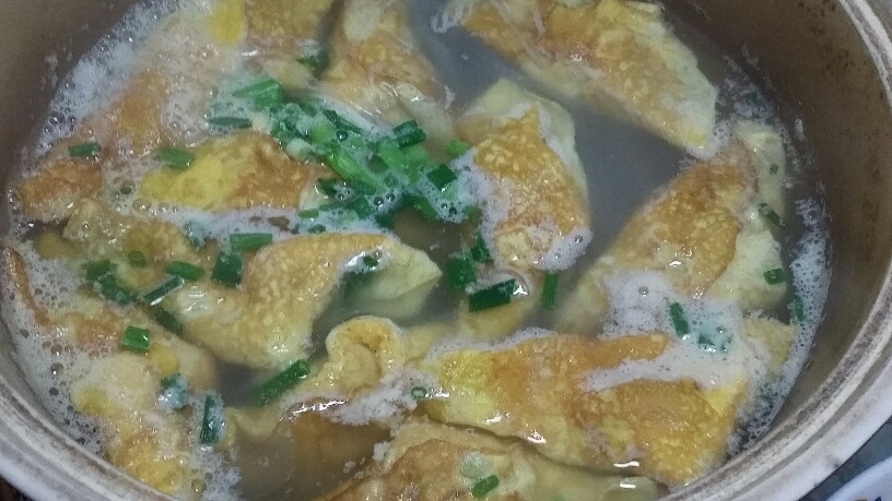 Egg Dumpling Soup– This is the ultimate tradition in my dad’s family. With my uncle around, no distance could let this dish disappear. We didn’t have my grandparent’s epic ten year old wok (with a rounded bottom), so this year, the two of them stood over a mini omelet pan folding away