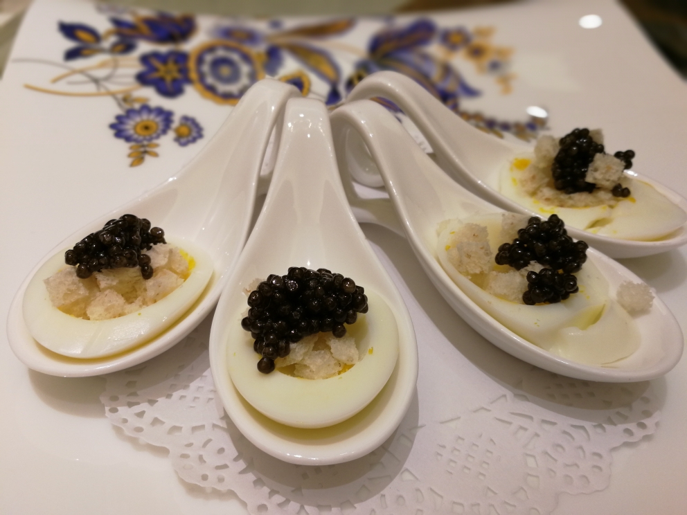 Egg with Caviar- After the goose head, I choose a (slightly) more down to earth dish. Each egg actually had a fair amount of caviar, which added luxury and a delightful briny richness. My only complaint is that they removed the yolk and replaced it with strangely sweet breadcrumbs.
