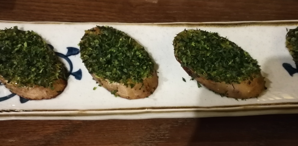 Grilled Chinese yam with Seaweed Salt- Chinese yam is one of my favorite veggies of all time. It has a delightful, fresh crunch that provides the perfect break from the heavy meats. I’d never had it with seaweed, but I was excited to try. I’m sure glad I did. The seaweed brought an incredible burst of umami. The real highlight, however, was the touch of a sweet, tangy vinegar drizzle.