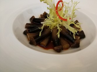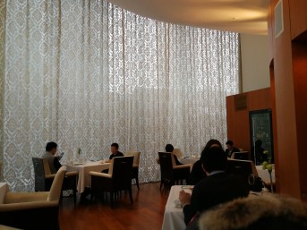 Tang Court is definitely a restaurant best left for special occasions and VIP guests. It simply oozes elegance, and with only 20 seats in the main hall, is practically reservation only. The other 90 available seats are split between 8 private dining halls. We considered booking one, but the minimum is 5 people and we would have been stuck to a set menu. With that said, it’s not black tie either- business casual is enough. The calm, elegance, combined with the beautiful lighting of the expansive windows really highlighted the three star experience