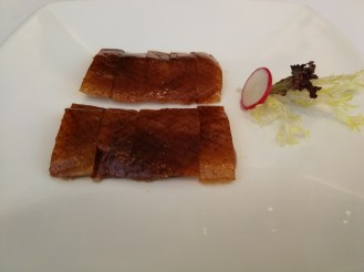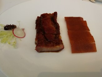 Shrimp wonton with Pickled Radish- This beautiful, delicate dish showed up as a “pre- meal appetizer”. It was AMAZING. The skin was unbelievably thin yet snappy. The filling was nothing short of an umami bomb featuring tender, fresh shrimp napped in fatty pork that brought an incredible richness without overwhelming the palate. More incredible were the pickles- thin strips of radish rolled around finely julienned carrots- the perfect pop of acidic sweetness. I guess this is what it takes to get three michelin stars