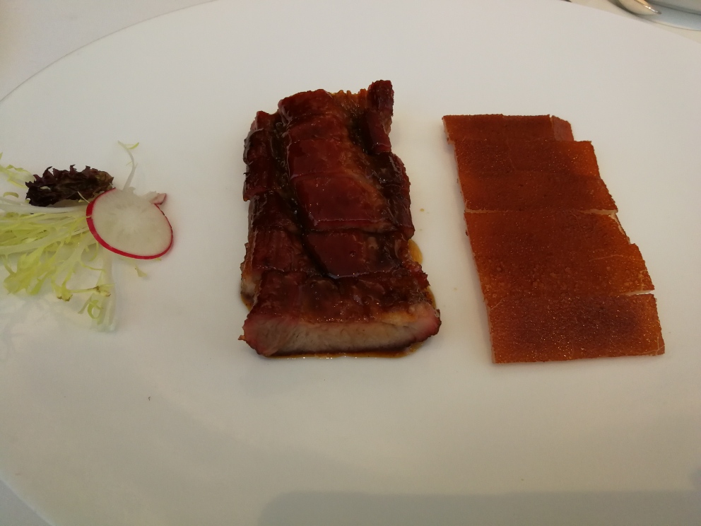 Tang Court is definitely a restaurant best left for special occasions and VIP guests. It simply oozes elegance, and with only 20 seats in the main hall, is practically reservation only. The other 90 available seats are split between 8 private dining halls. We considered booking one, but the minimum is 5 people and we would have been stuck to a set menu. With that said, it’s not black tie either- business casual is enough. The calm, elegance, combined with the beautiful lighting of the expansive windows really highlighted the three star experience