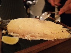 Salt Baked Halibut- Finally, my dish. I say finally, because it didn’t arrive until my parents and brother were FINISHED with theirs. However, the wait was 1000% worth it. First, the fish was incredibly fresh, a rarity given that imported seafood is generally a red flag that the dish is sub par and overpriced. More importantly, the fish could not have been more tender and juicy. The thick salt crust simultaneously flavours the meat and locks in moisture. Also, I really enjoyed watching the waiter carefully remove the salt crust whole