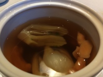 Double Boiled Sea Cucumber with Chinese Cabbage- Sea cucumber is one of my favorites, so I decided to let myself indulge a bit. This soup really hit the mark. It had an incredibly, clean, silky umami flavour enhanced by the shitake. The sea cucumber added a delicious snap. The cabbage added a nice sweetness that really made the entire dish pop.
