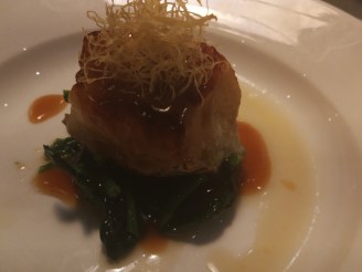 The atmosphere at Canton Table is 1920’s Shanghai elegance- not glamour, sultry chic. The interior features simple furniture and wooden paneling painted with scenes of old Shanghai, creating an chic atmosphere reminiscent of an upscale nightclub. The exposed vents and brickwork add an industrial feel that provides a unique break from the stuffy atmosphere at most high end places. However, the “shabby Chic” vibe was quite a shock, especially when the heating broke down.