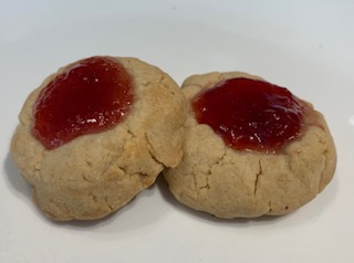 - Flatten balls into disks, creating a divet in the center. Spoon 1/2 tsp jelly into the divets