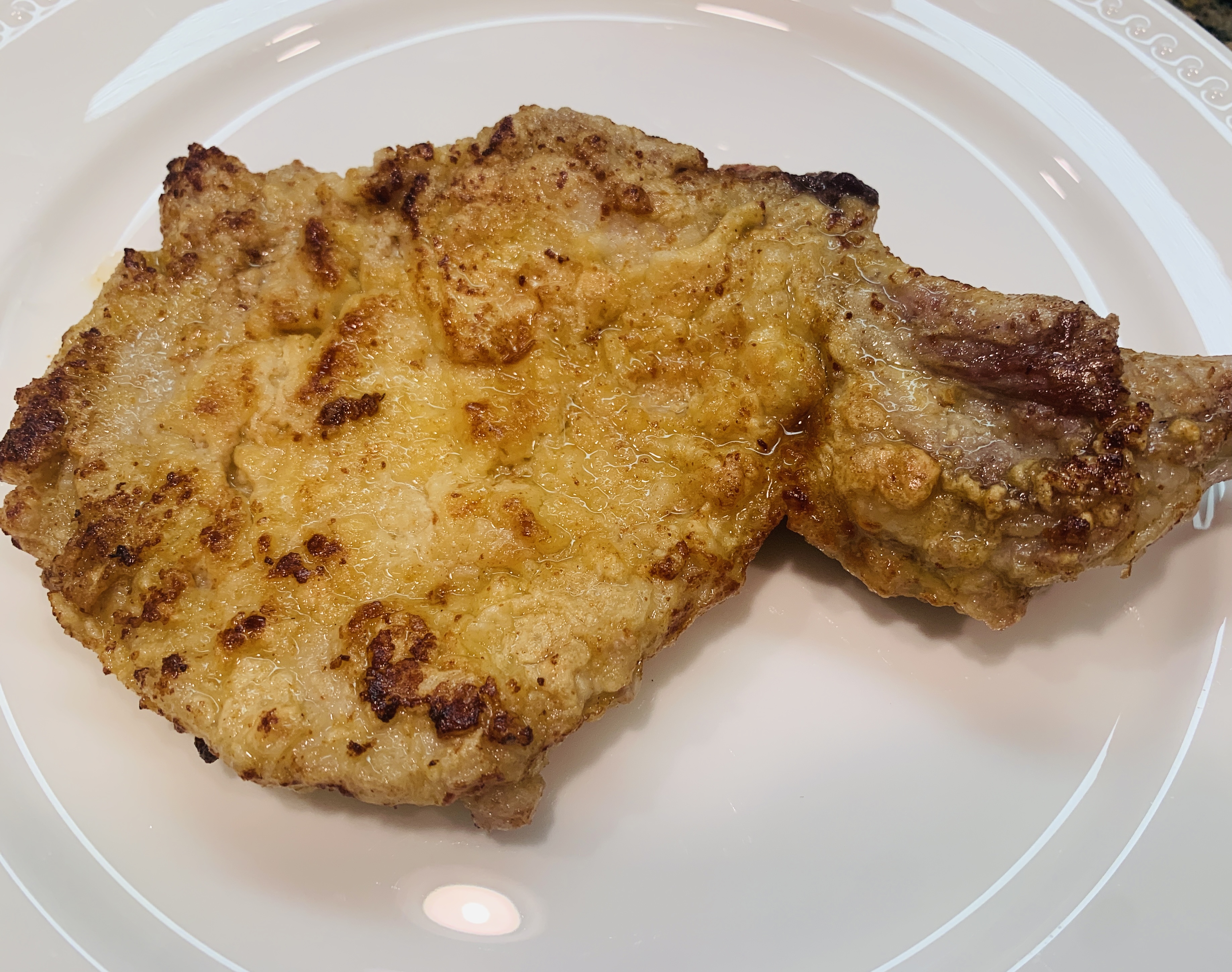 1. Season pork chops generously with salt. Pound until nearly translucent (about 1/8in thick)