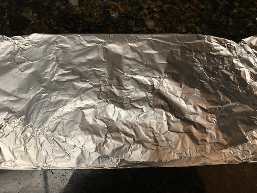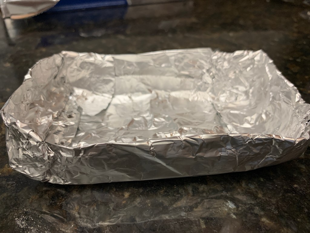 That’s right. I turned a mask and some foil into a loaf pan. Just having fun 😉