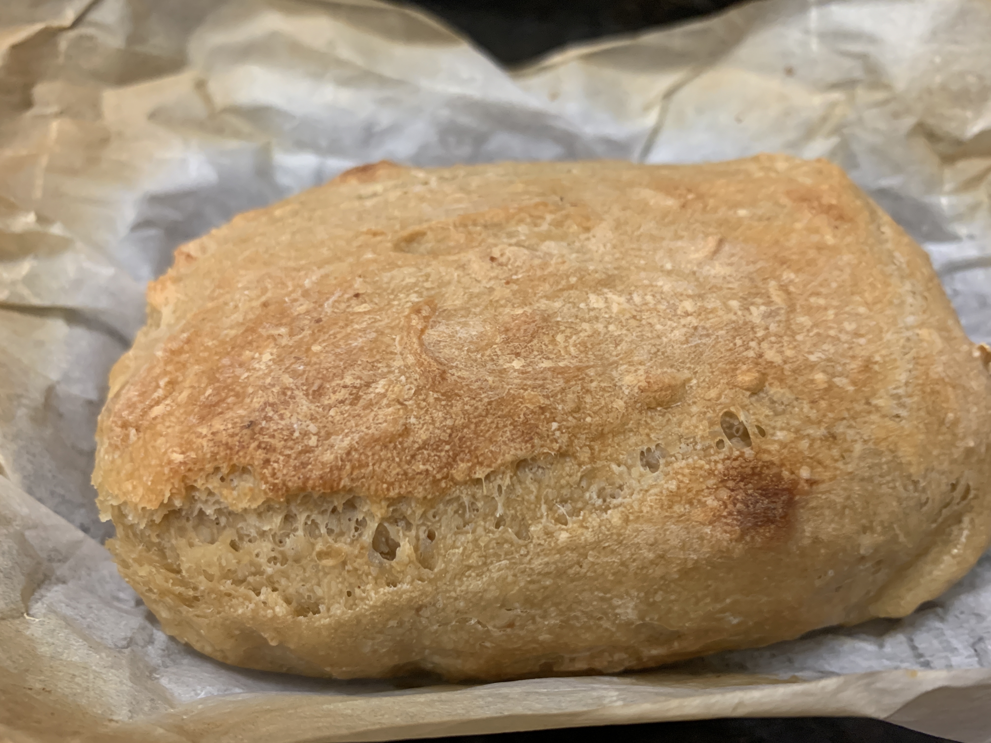 - Preheat oven to 475F. Line two mini- loaf pans* with parchment paper. Divide dough into two loaves and place in loaf pans. Bake for 25-30min or until the loaf sounds hollow when tapped