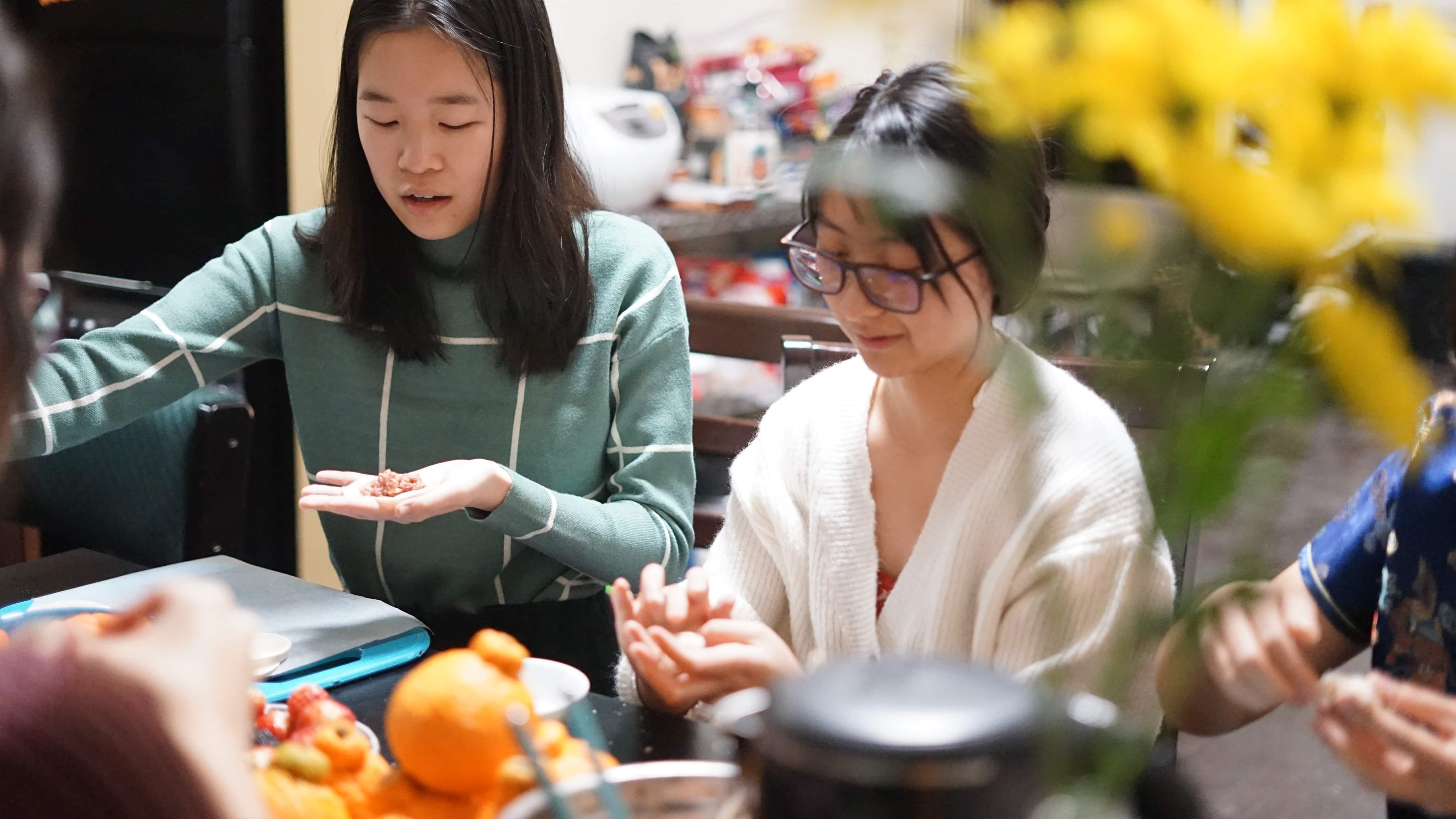 One thing that really struck me about this gathering is how closely they followed tradition: sweeping the floors, decorating with yellow flowers (one of the girls are Vietnamese) and red stickers and waiting for everyone to arrive. I thought it was very sweet that they did this.