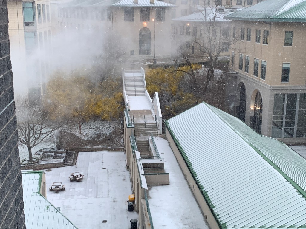 Hi! It’s spring! Someone please send the commissar of PGH’s weather a message because it’s snowing again….