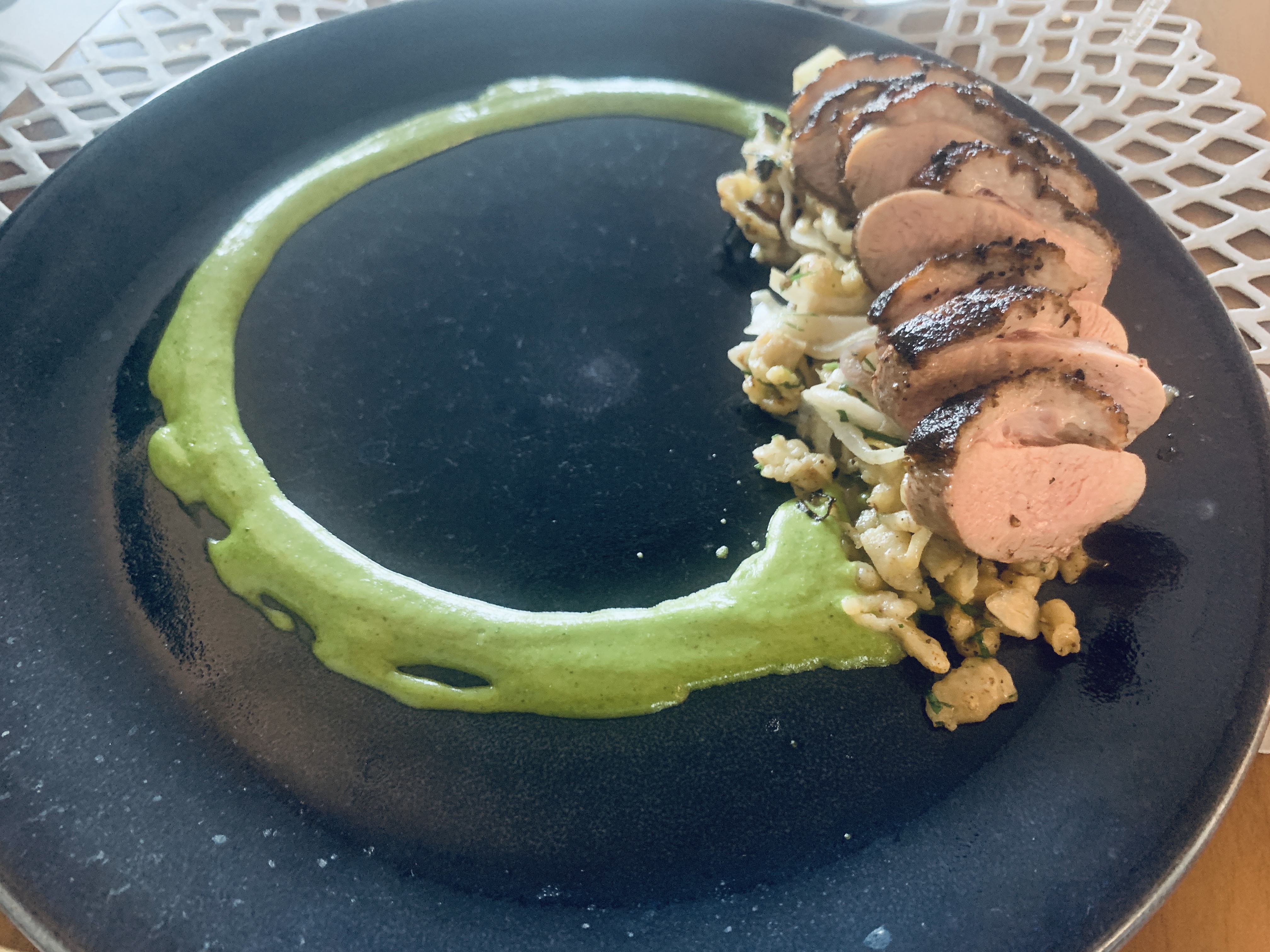 Seared Duck Breast with Spatzel and Romanesco- This is one of their signature dishes. My friend ordered this and he was satisfied, but I must say I was disappointed. To start with the good, The duck was tender with a nice sear. The romanesco puree was fresh and bright. With that said, the duck could have been more pink and better seasoned. The meat was slightly bland.