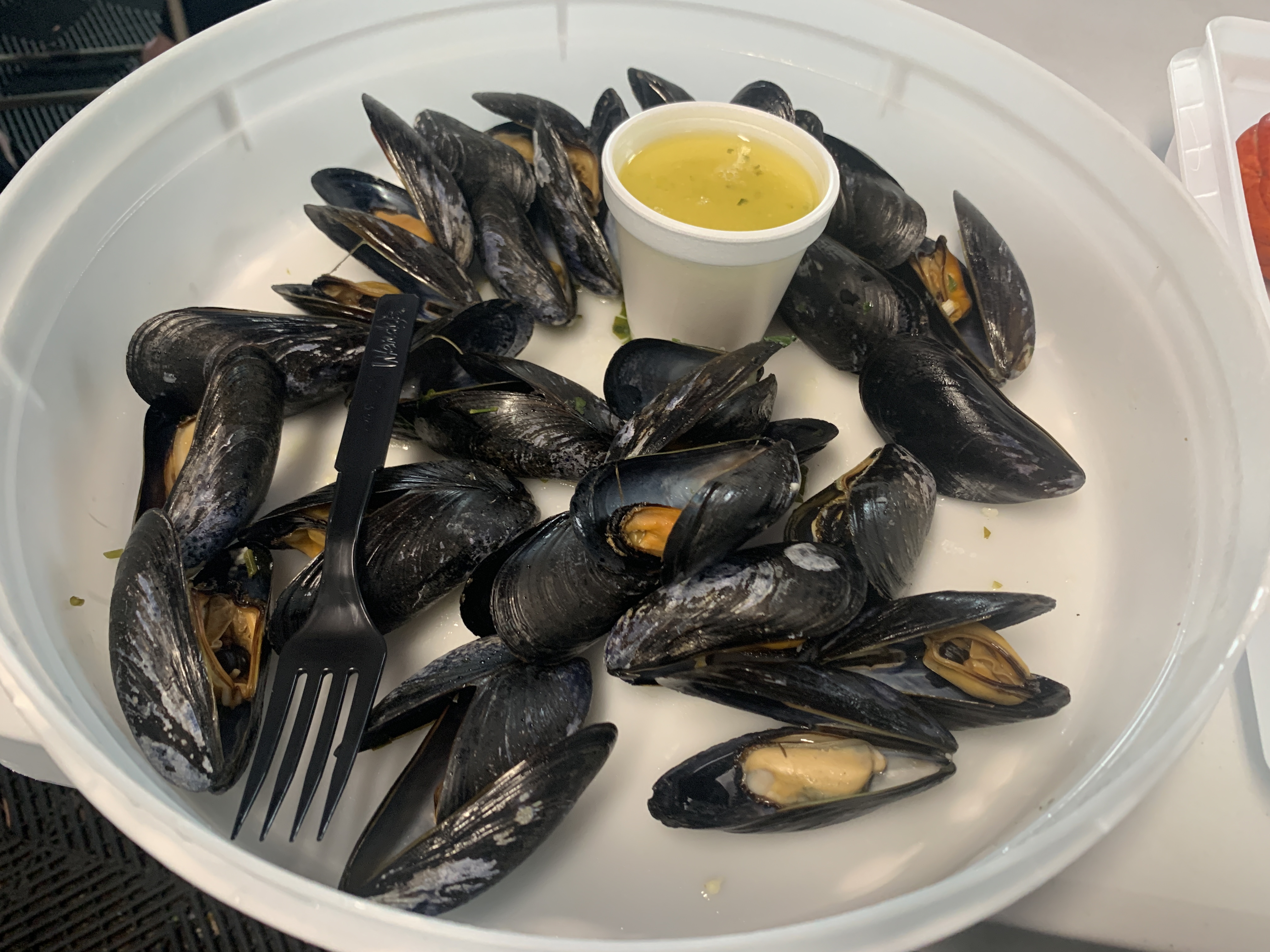 They are famous for their lobster sandwich. Well…. mayo isn’t my thing, so I opted for some simpler fare: A steamed lobster, garlic butter mussels, and some fresh salmon.