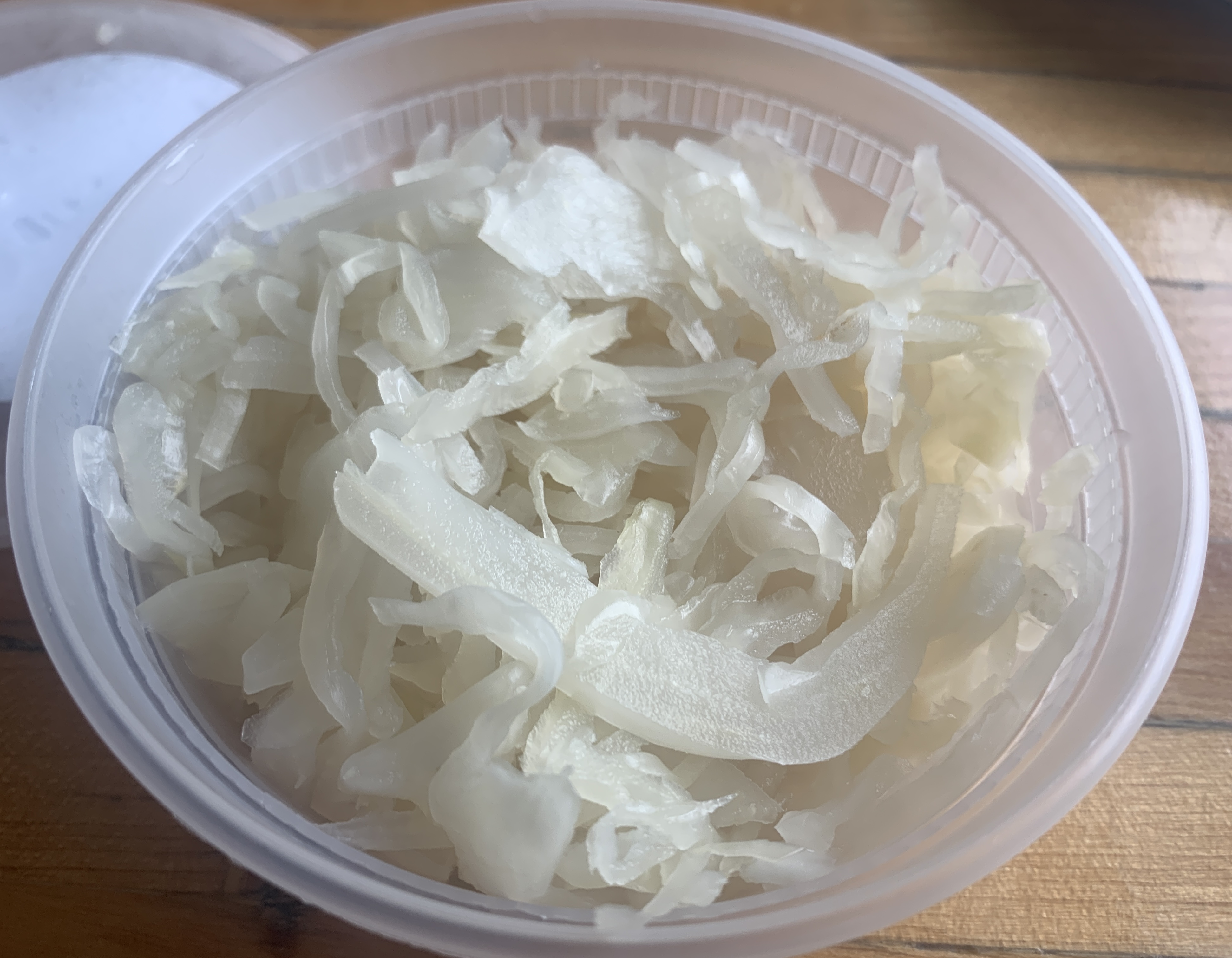 The kraut made a great “starter”. It was surprisingly mild, but still flavourful. I regret not getting some more for home.