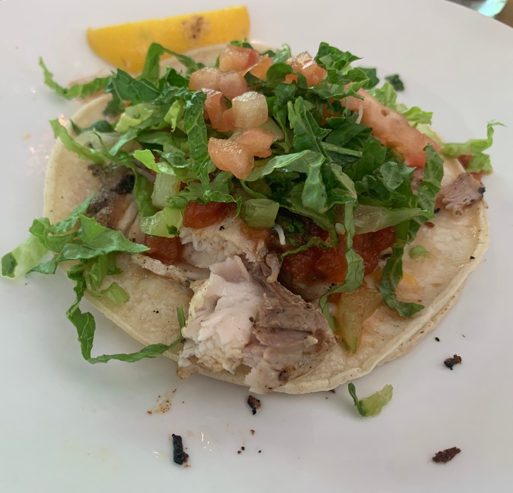 Mum went for a fish taco- grilled snapper on corn tortilla with lettuce, tomato, cheese and salsa