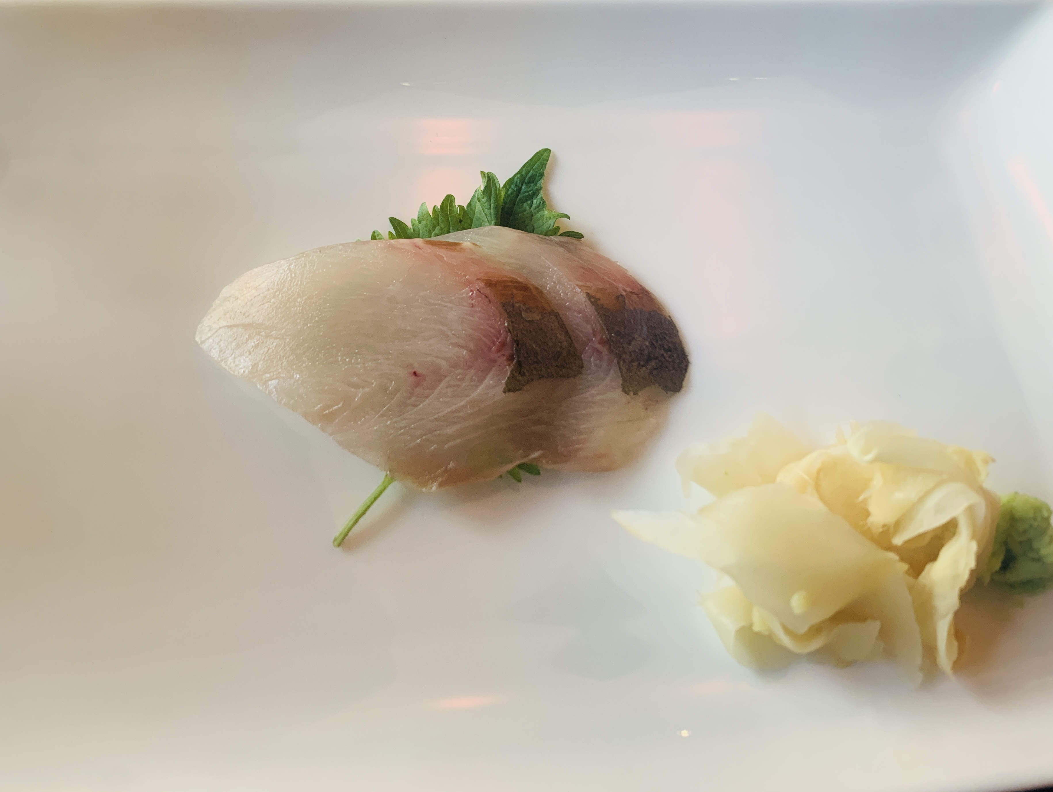 Next, some obligatory sushi. Here’s where the chalkboard shines. Standard menu offers the basics: sake (salmon), ebi (shrimp), hokage (scallops), kama (crab)….The chalkboard adds saba (mackerel), 3 types of uni, 3 types of toro (fatty tuna), and ankimo. yes, ANKIMO! Ankimo is monkfish liver, usually served in a ponzu sauce. When fresh, it’s creamy and mild with a slight funk reminicent of ripened cheese. I’d only ever seen Ankimo at high end places in the US. Of course I got that, a piece of kamatoro and two pieces of saba.