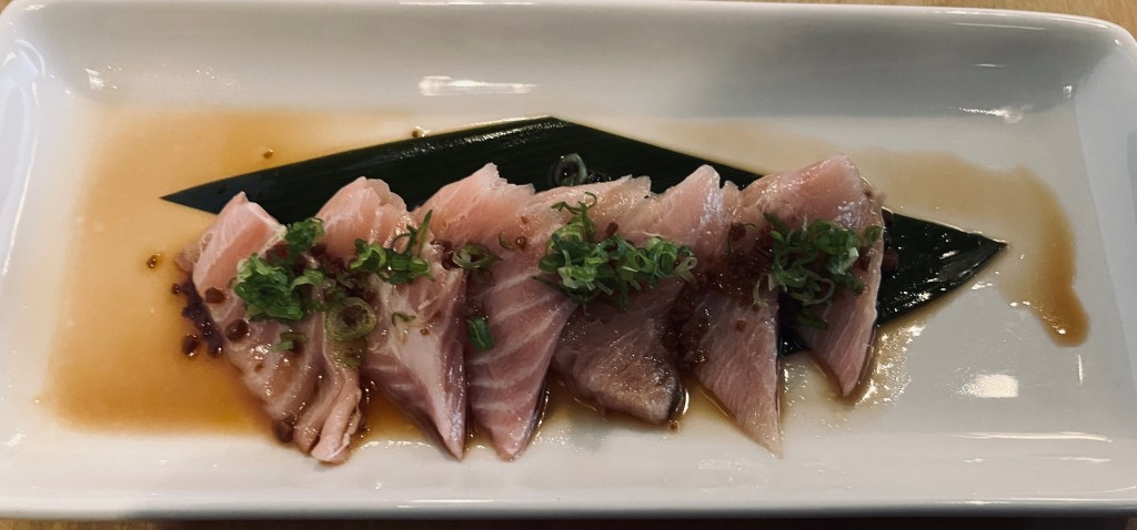 The cutting was slightly clumsy, but the taste was phenomenal. It’s reminicent of a much richer version of white tuna. The ponzu sauce counterbalanced the fat and enhanced the umami flavour. I kind of regret not trying some more!